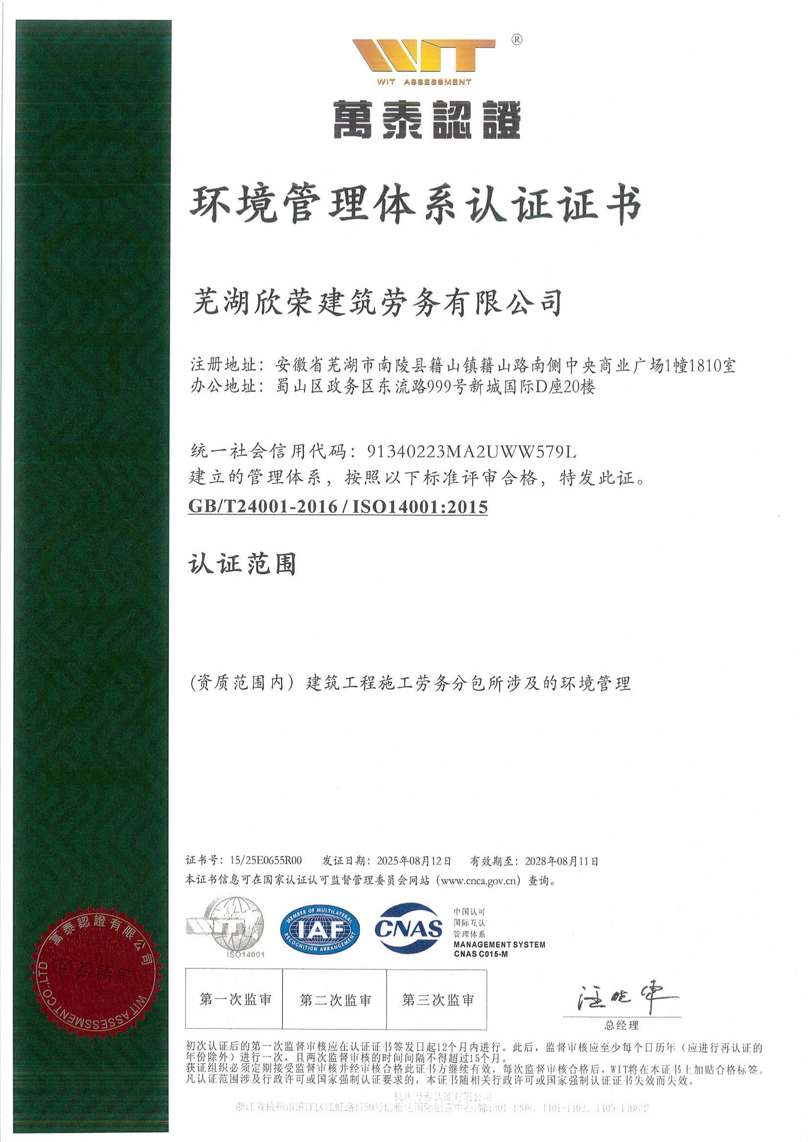 下一篇:欣荣劳务获“质量管理体系认证”证书