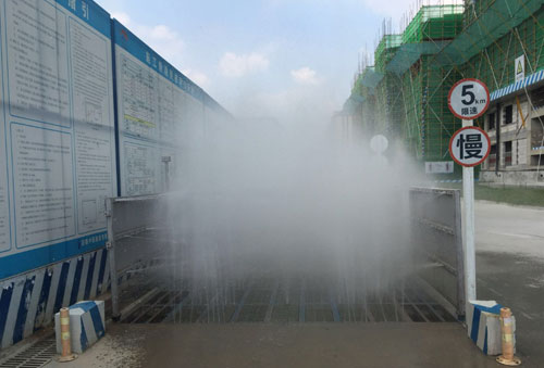 安全文明施工—扬尘管理:现场安装塔吊喷淋、外架喷淋,车辆冲洗台等,有效保证扬尘治理。